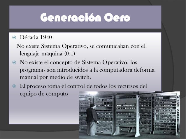 Los primeros sistemas computacionales no poseían sistemas operativos. Para los usuarios eran complejos por que trabajaban con lenguaje máquina. Todas las instrucciones eran codificadas manualmente.